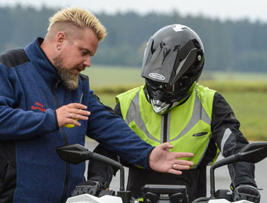 Was für ein sensationelles Gefühl. Mit dem Motorrad bekommt das Wort Kurve eine ganz neue Bedeutung. Damit Du richtig in der Kurve liegst, und auch sonst immer sicher unterwegs bist, zeigen wir Dir die wichtigsten Regeln auf dem Bike. Mit uns lernst Du, die Maschine in jeder Situation zu beherrschen. Für die Ausbildung stellen wir auf Wunsch die passende Schutzkleidung.